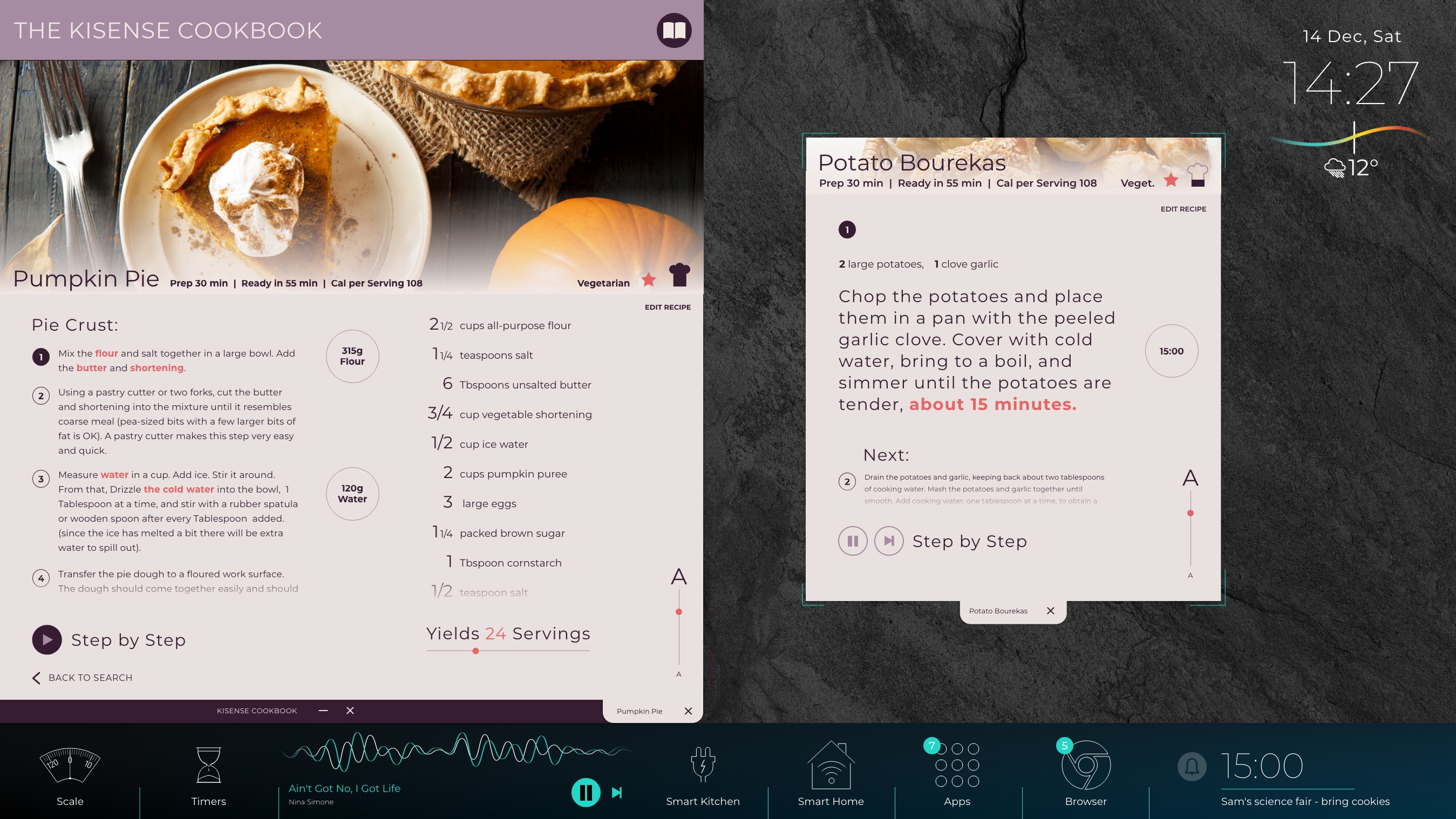 Cooking flows, like baking rolls, were designed to orchestrate multiple functions. The flow seamlessly integrates the recipe app, the digital scale, multiple overlapping timers, and smart home controls to preheat the oven - unifying a complex, multi-step process into one manageable workflow.