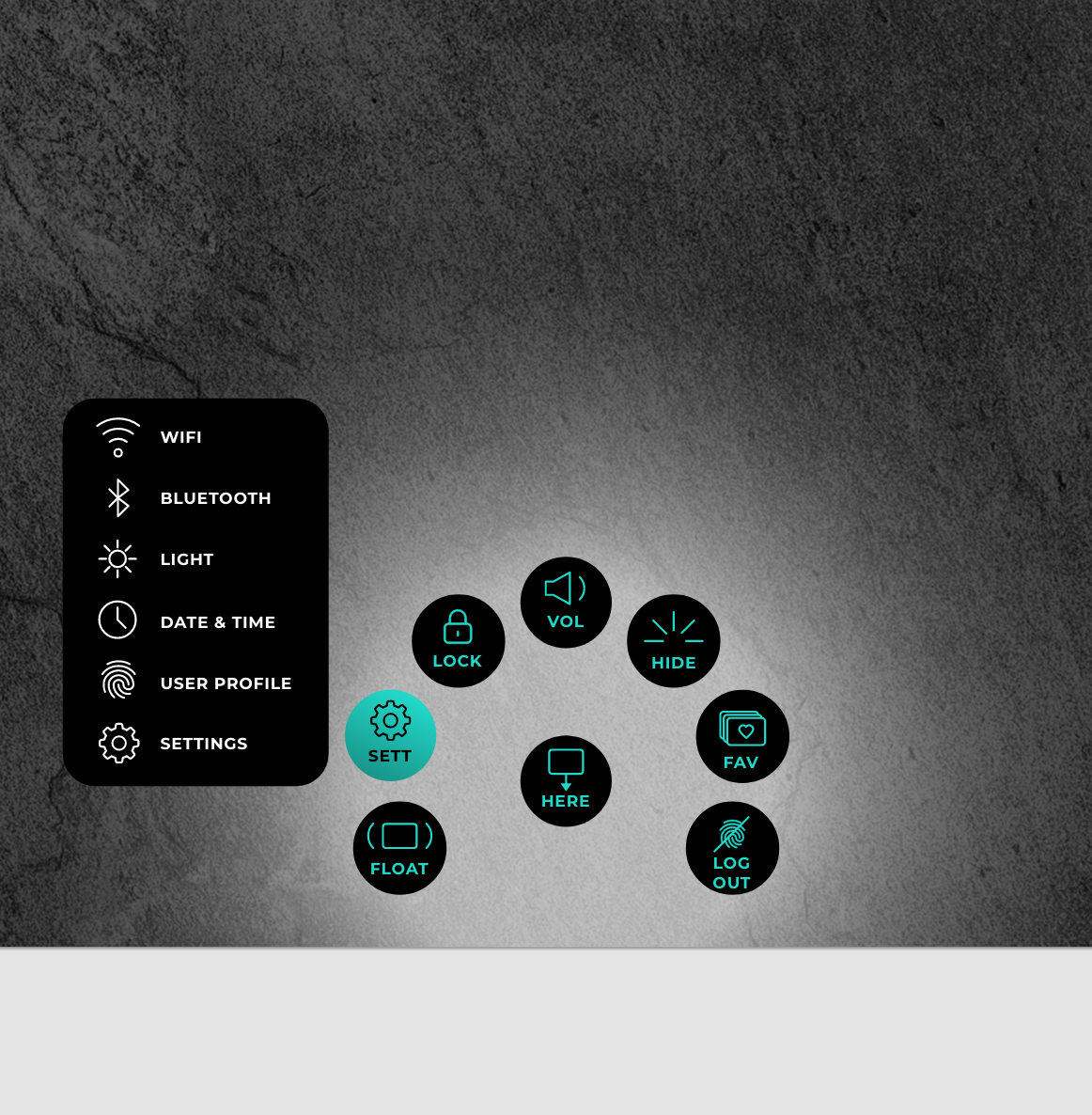To make sure users could approach the device from any direction we came we came up with the quick action menu that would open by swiping the edge of the screen and allow for basic interactions to be performed or if needed- for the entire operating system UI to rotate and face the user.